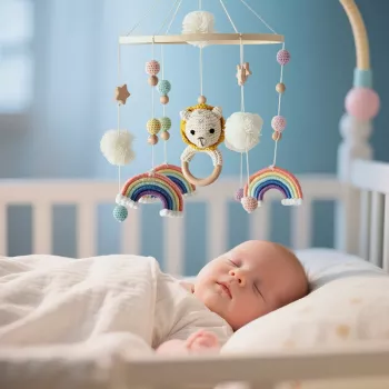 Wooden Baby Crib Mobile with Soft Felt Animals and Rainbow Hanging Toys