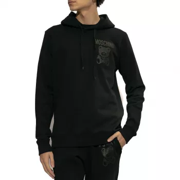 Moschino Men’s Black Printed Cotton Hooded Sweatshirt